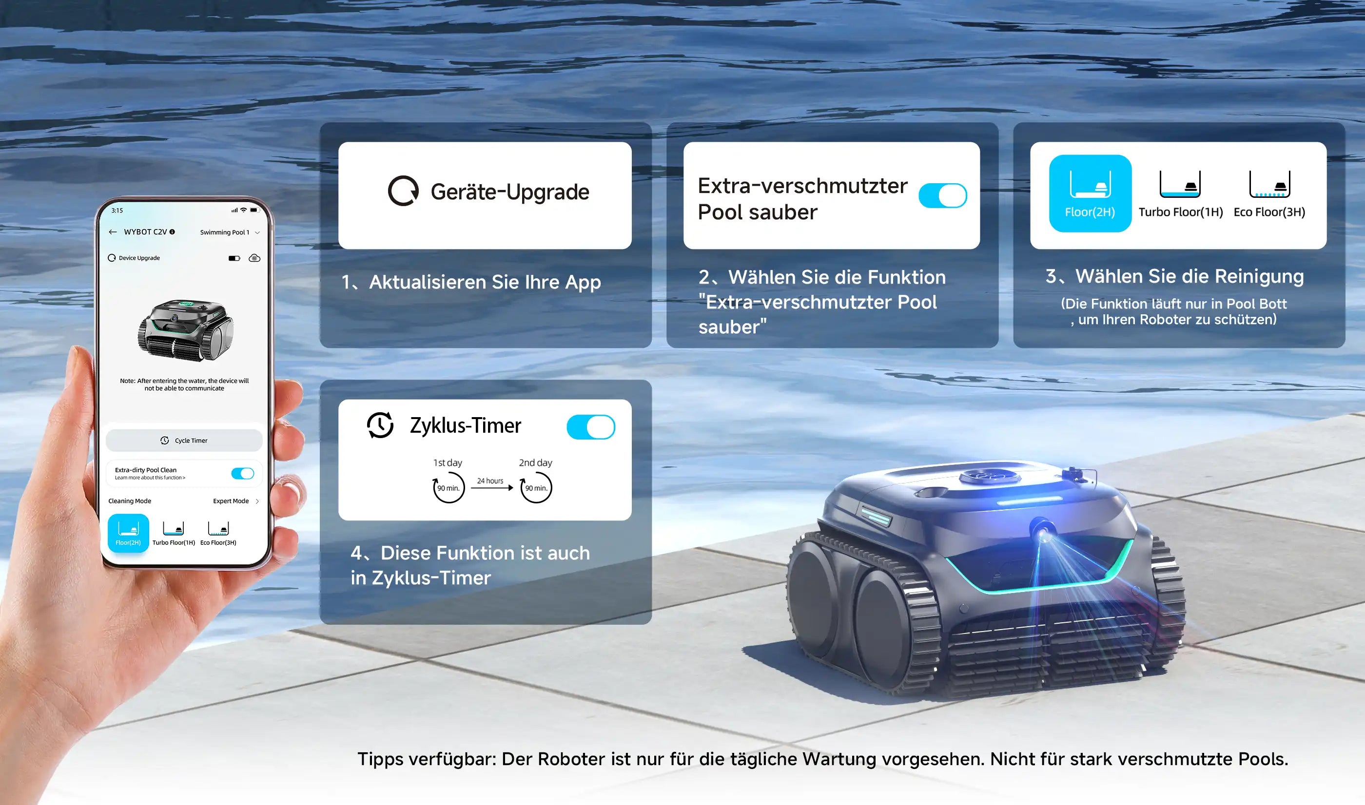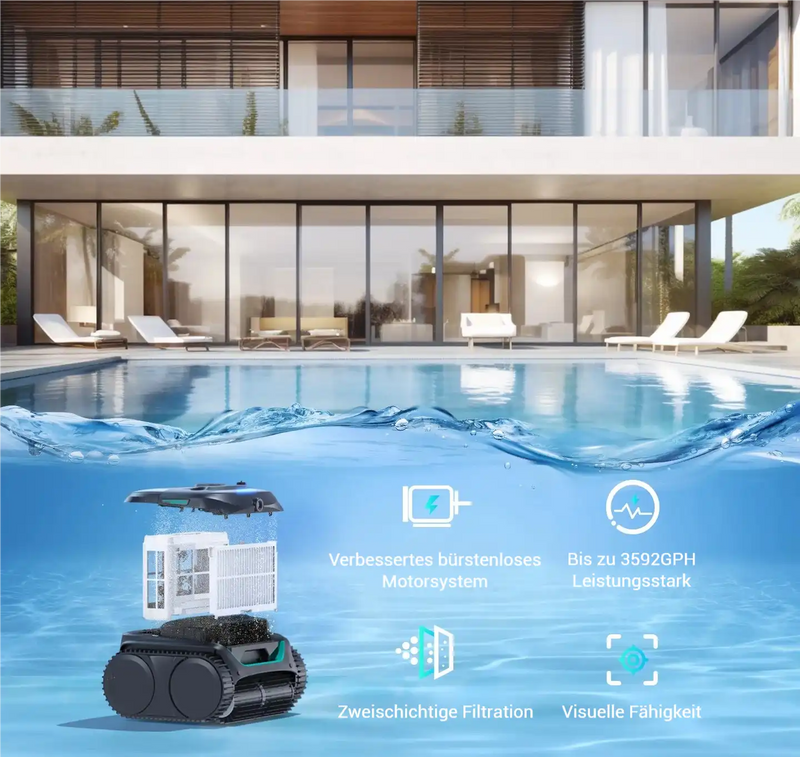 Ihr Assistent zur Schwimmbadreinigung. Die Reinigung ist einfach und mühelos.