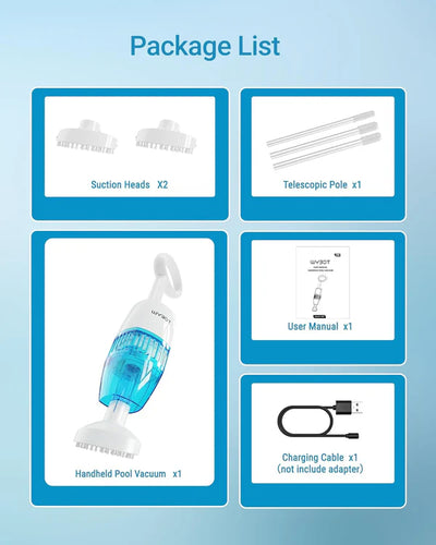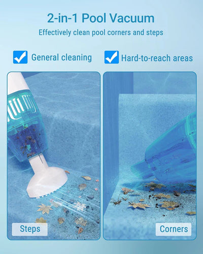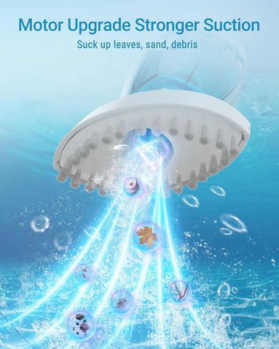 Succión potente mejorada:Esta máquina limpiadora de piscinas de mano viene con un motor potente y cepillos inferiores que brindan una succión de vacío mejorada para hacer que la succión sea más fuerte para una variedad de limpieza: hojas, suciedad y arena.