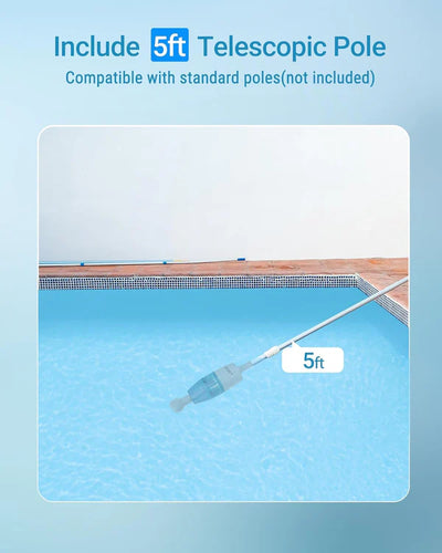Poste telescópico (incluido): Adecuado para succión a larga distancia. (Perfecto para limpiar spas, jacuzzis y piscinas pequeñas).