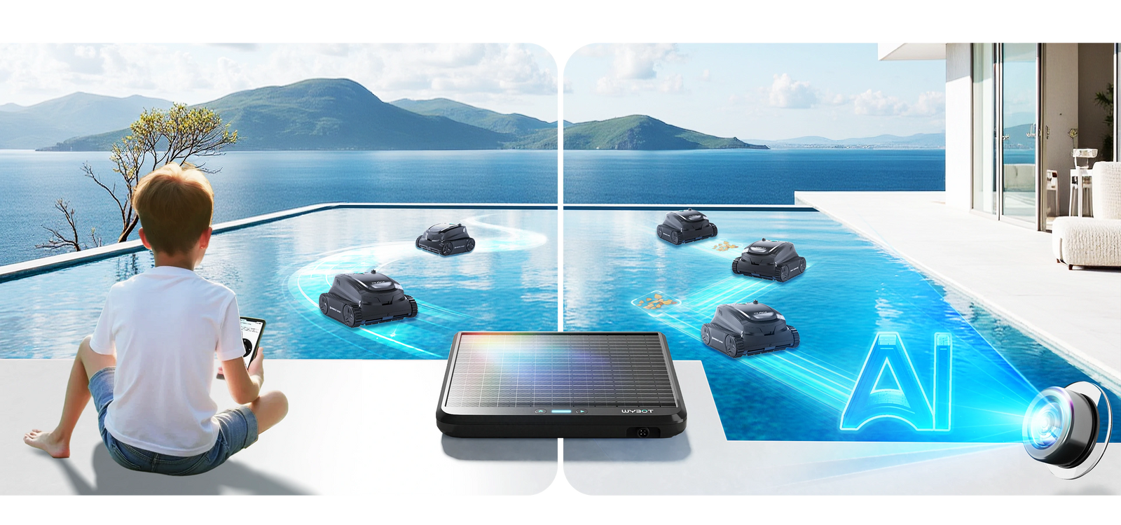 3. Retire el robot del agua y cárguelo usando el adaptador de corriente. Asegúrese de que el lugar de carga tenga cobertura WiFi (debe coincidir con la información WiFi configurada en la base). Durante la carga, el robot comprobará y actualizará automáticamente el firmware, tomando aproximadamente 30 minutos para todo el proceso.