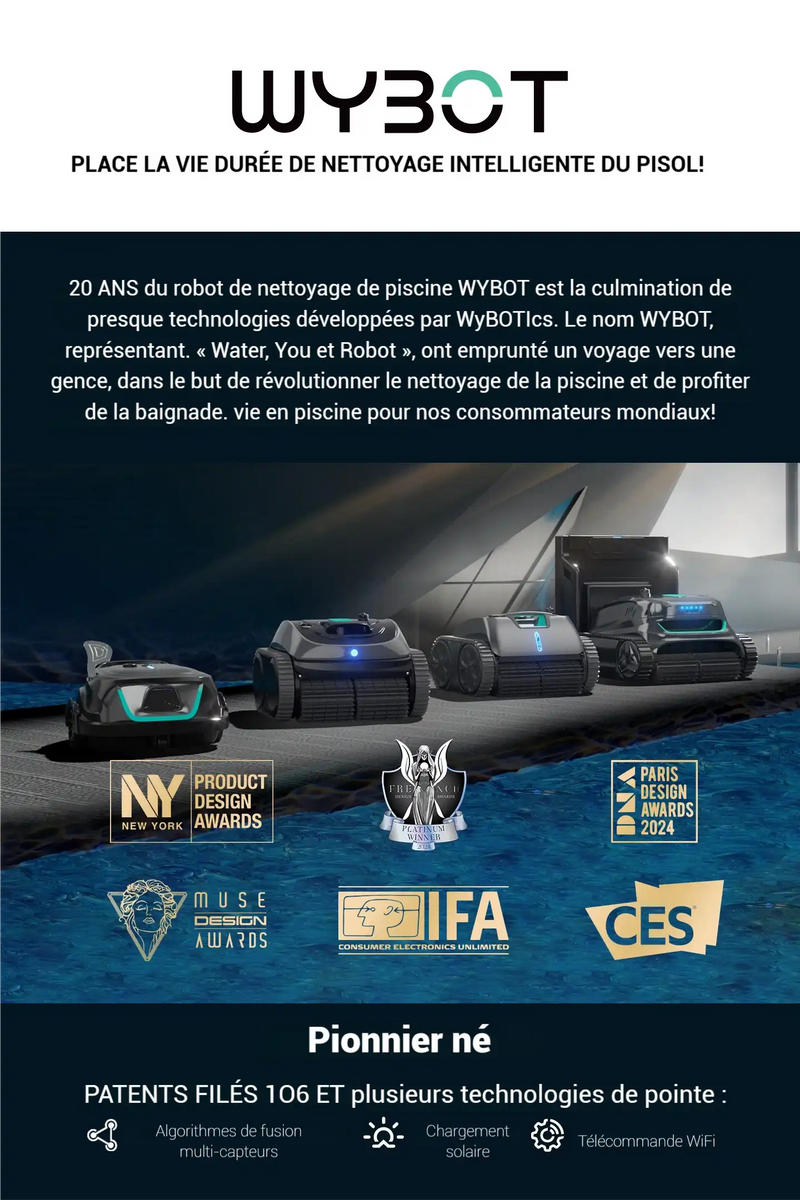 WYBOT A1 Robot nettoyeur de piscine sans fil