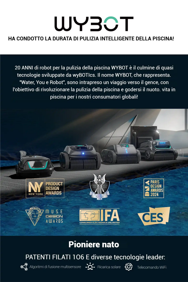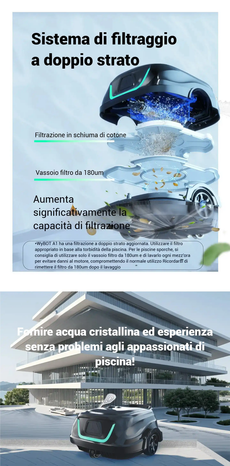 - Tipi di pool supportati - Per tutti i tipi di piscina con fondo piatto (pendenza max < 15°) e solo pavimento