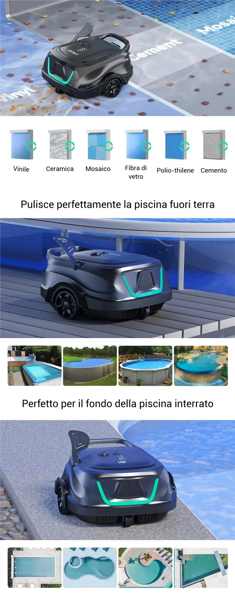 Come descritto, è più adatto per superfici piane/piscine fuori terra; richiede 2-10 minuti per sfuggire quando incontra pieghe o scarichi di dimensioni inferiori a 5 cm.