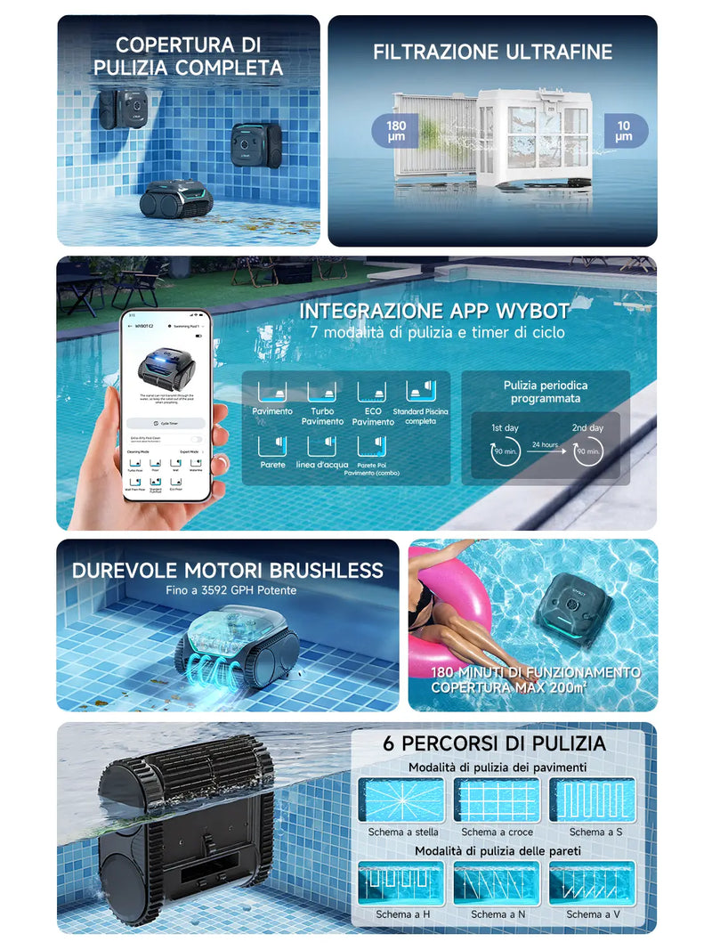 Per istruzioni dettagliate, guarda i nostri video della guida operativa: Guida Operativa WYBOT C2