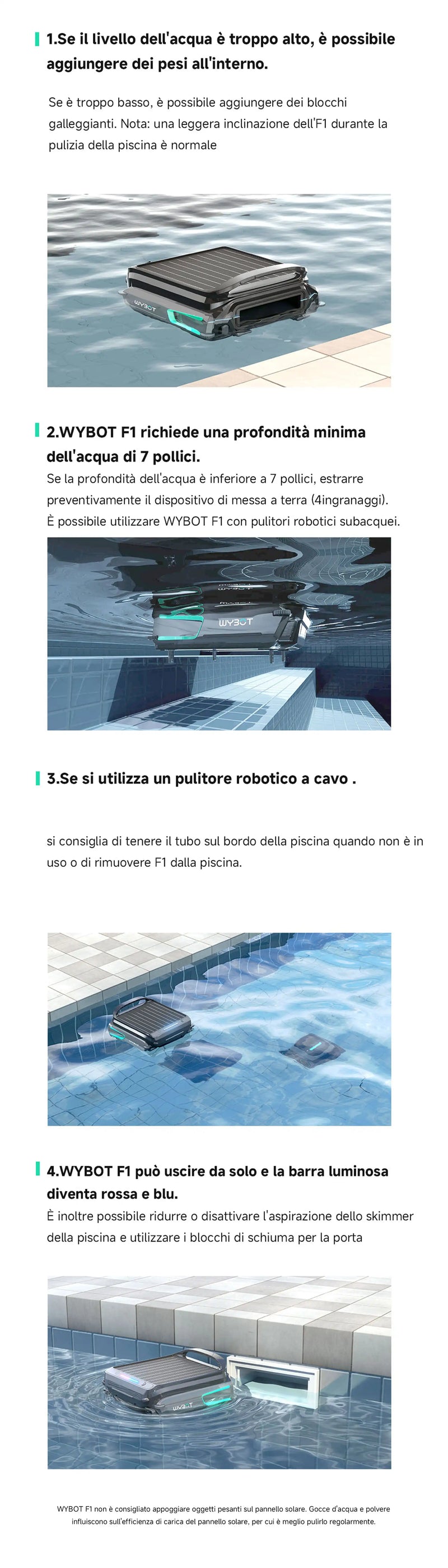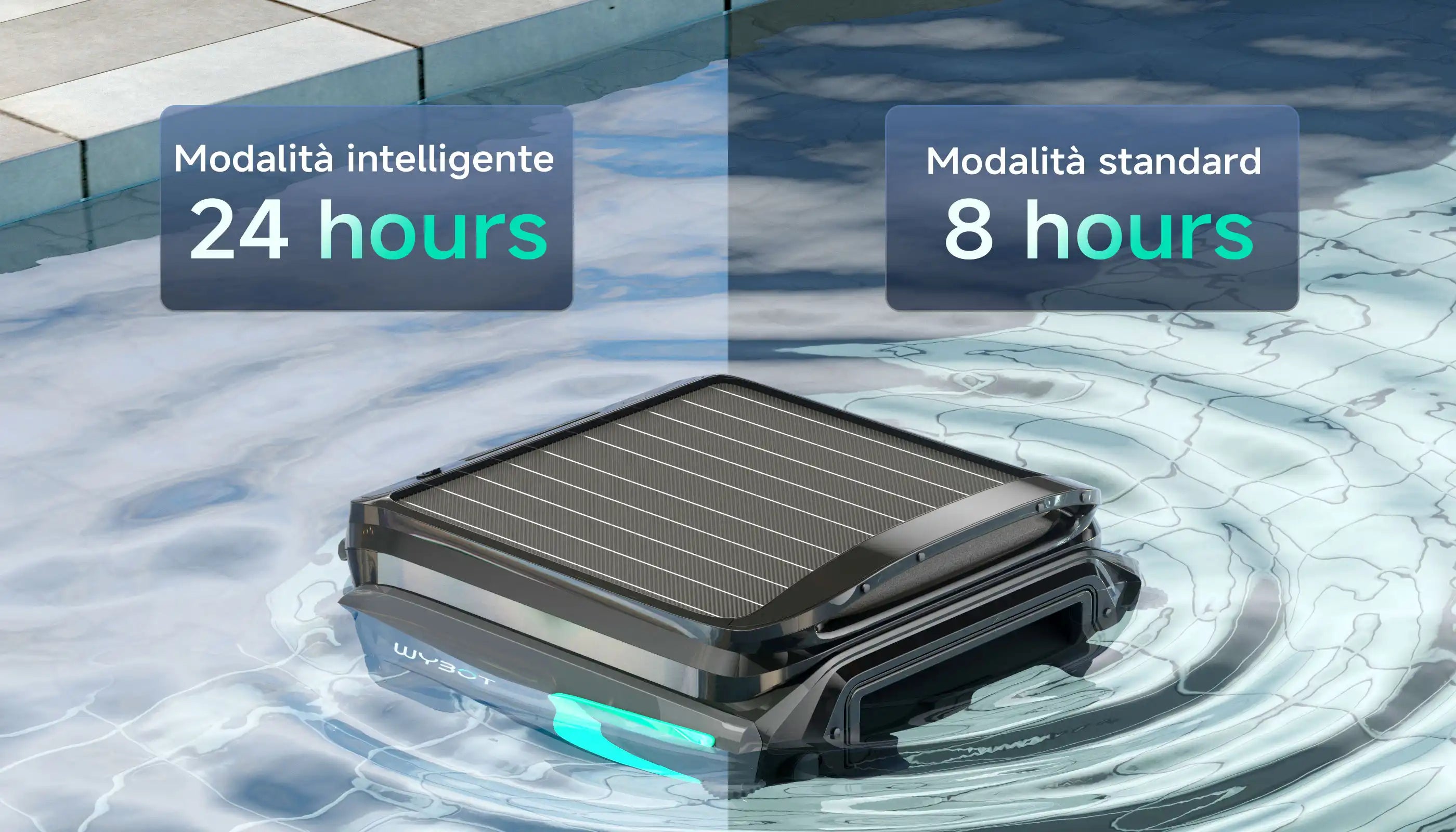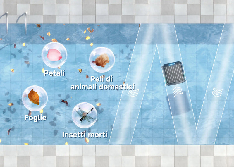 WYBOT F1 funziona in cicli di pulizia intelligenti, mettendo automaticamente in pausa e riprendendo per offrire una pulizia superficiale continua. Questo assicura che foglie e detriti vengano rimossi durante il giorno, mantenendo la superficie della tua piscina fresca e invitante—senza alcuno sforzo da parte tua.